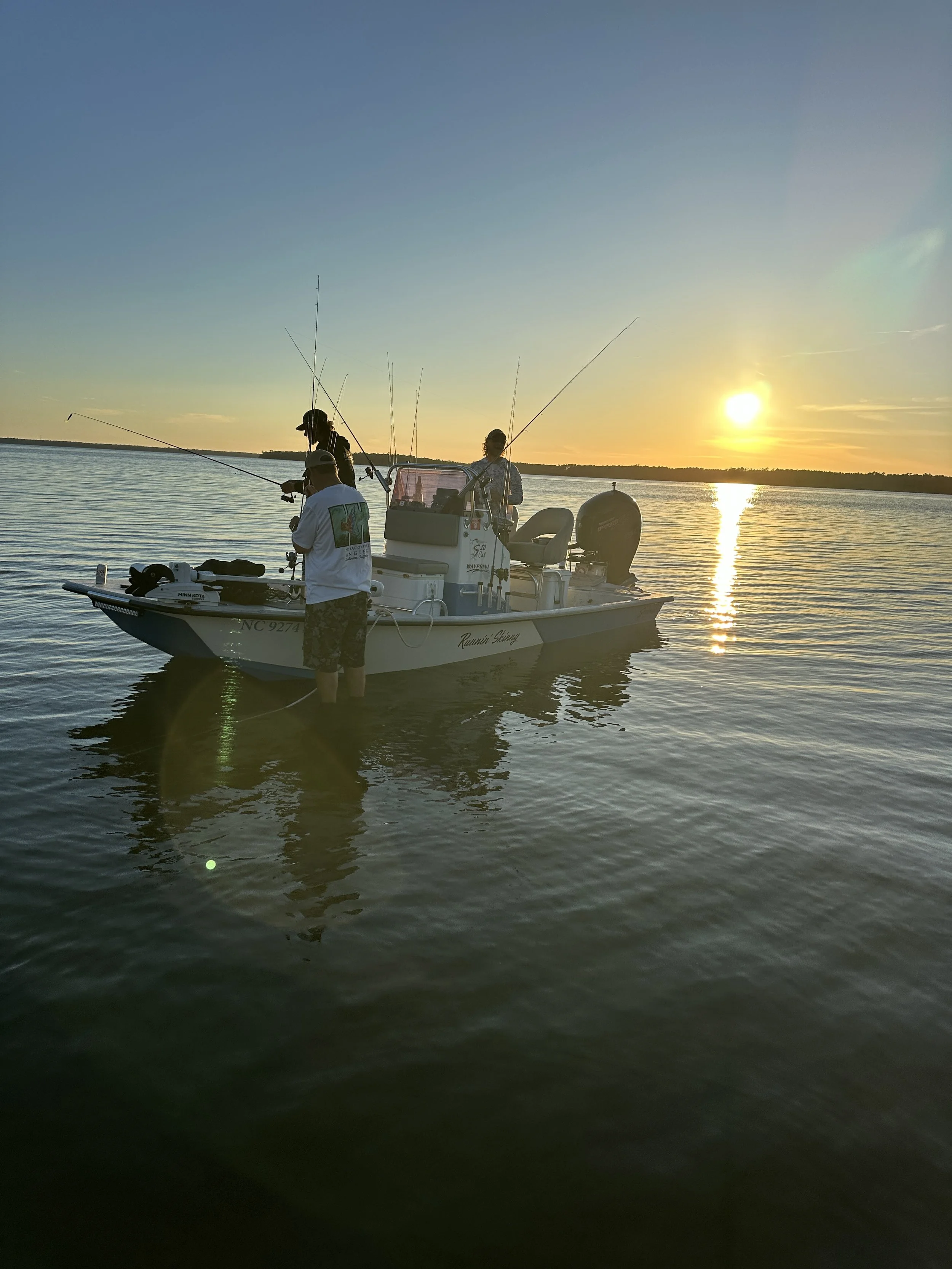 Our boat is a 20 foot catamaran style hull equipped with a jack plate and trim tabs. Powered by a 150hp Mercury ProXS and the latest electronics, this boat will get you from the ramp to the fish quickly and comfortably. This boat will draft in 6-8” of water and run in even less, so no fish is safe. We can safely accommodate 4 people plus the captain, though 2-3 is ideal for maximum comfort.
