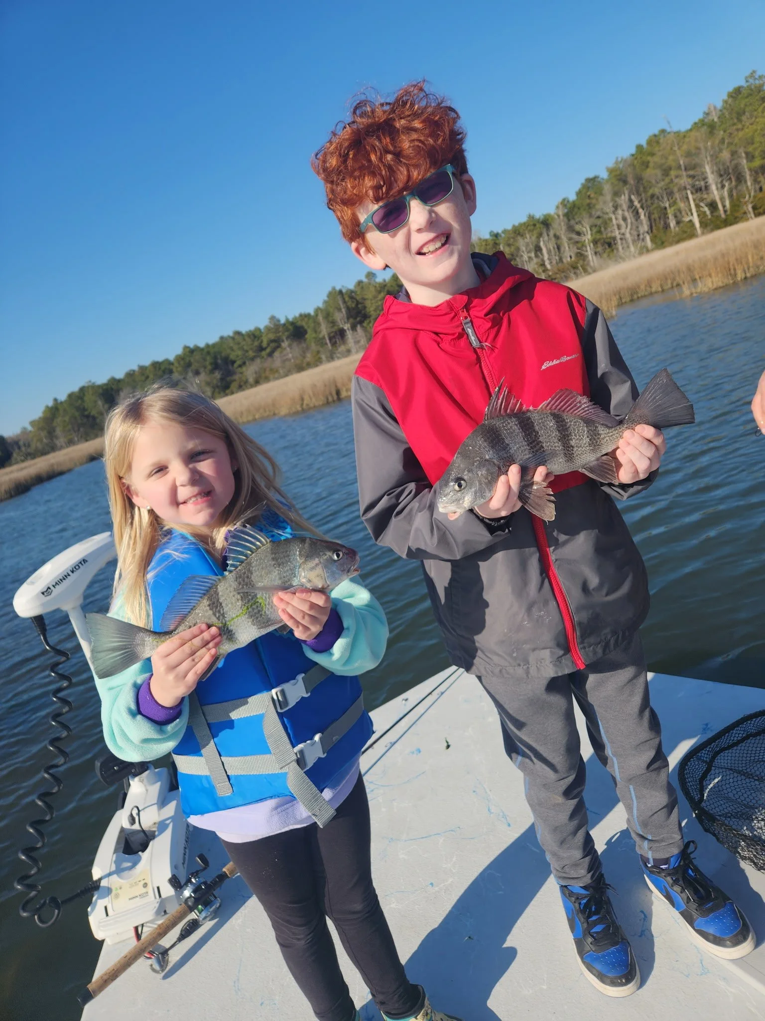 Children are welcomed and encouraged on all bookings, as there is nothing better than getting the young ones into nature early. Our Capt. will have a cooler with ice and waters on the boat for you, and will have room for any additional drinks or snacks you may desire. Sunscreen hats and polarized sunglasses are recommended as well.
